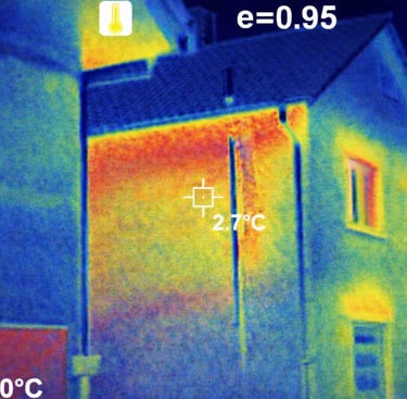 Auffällige Temperaturbereiche als Hinweis auf Feuchtigkeit in der Wärmedämmung